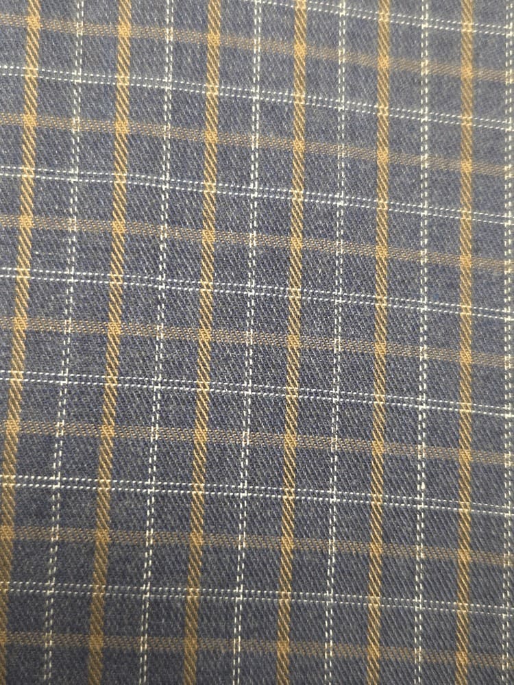 Collo Button-down, vestibilità regolare, senza taschino, polsino stondato con 1 bottone. Cotone pesante, blu polvere righe che formano quadretti senape e bianche