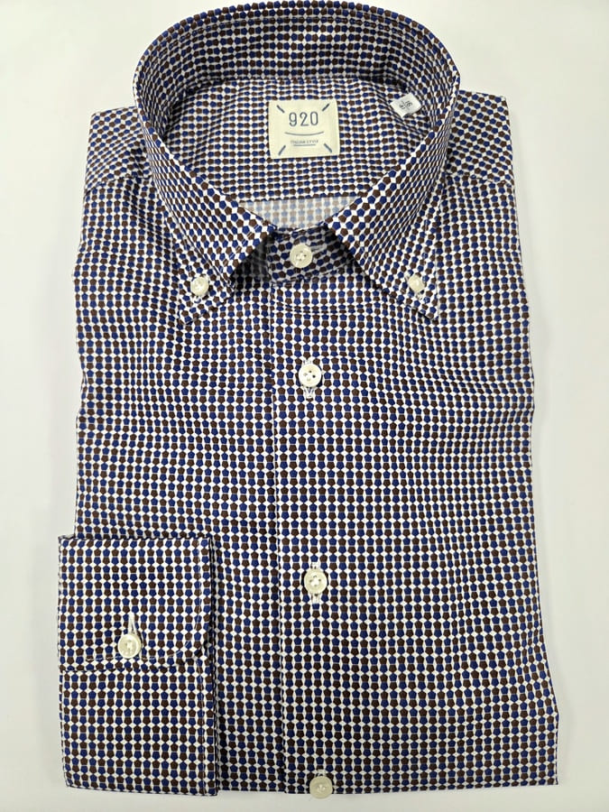 CAMICIA 920 DISEGNO GEOMETRICO BLU E MARRONE
