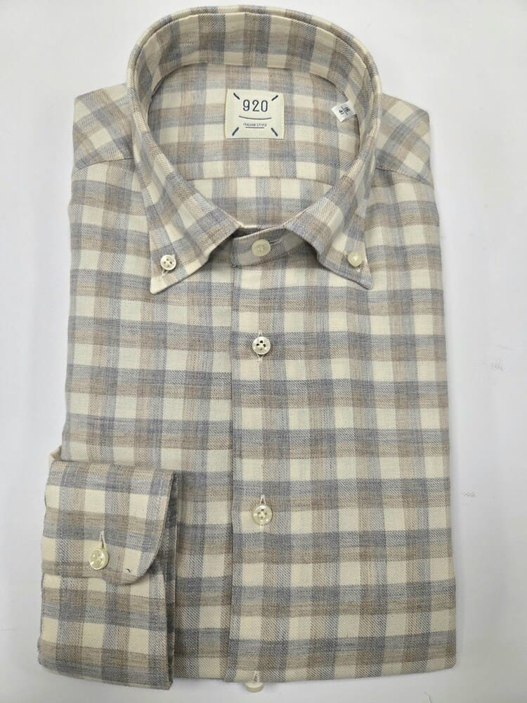 Collo Button-down, vestibilità regolare, senza taschino, polsino stondato con 1 bottone. Quadro nei toni tenui del panna, grigio e beige