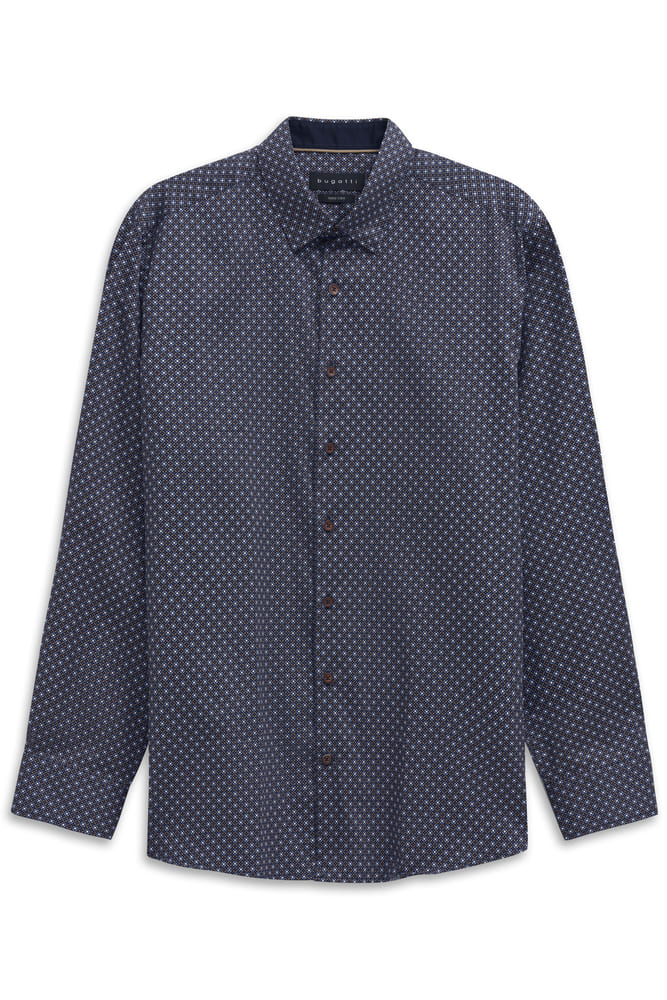 Questa camicia casual con finitura satinata aggiunge un tocco di eleganza al tuo look garantendo il massimo comfort. Il sottile motivo a rombi ha un aspetto moderno ed elegante, mentre la nobile lucentezza della finitura satinata valorizza visivamente la camicia. Grazie alla funzione Easy-Care, è particolarmente facile da stirare. Il colletto con i bottoncini nascosti sotto le vele assicura che si adatti sempre perfettamente, anche sotto maglioni o giacche, bottoni in tono marrone, polsino smussato don 2 bottoni, senza taschino. Con la sua vestibilità moderna leggermente aderente, la camicia ti offre una silhouette moderna senza costrizioni, perfetta per l’ufficio, il tempo libero o le occasioni speciali.