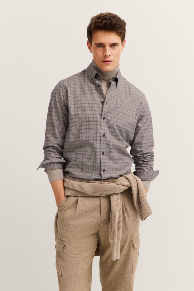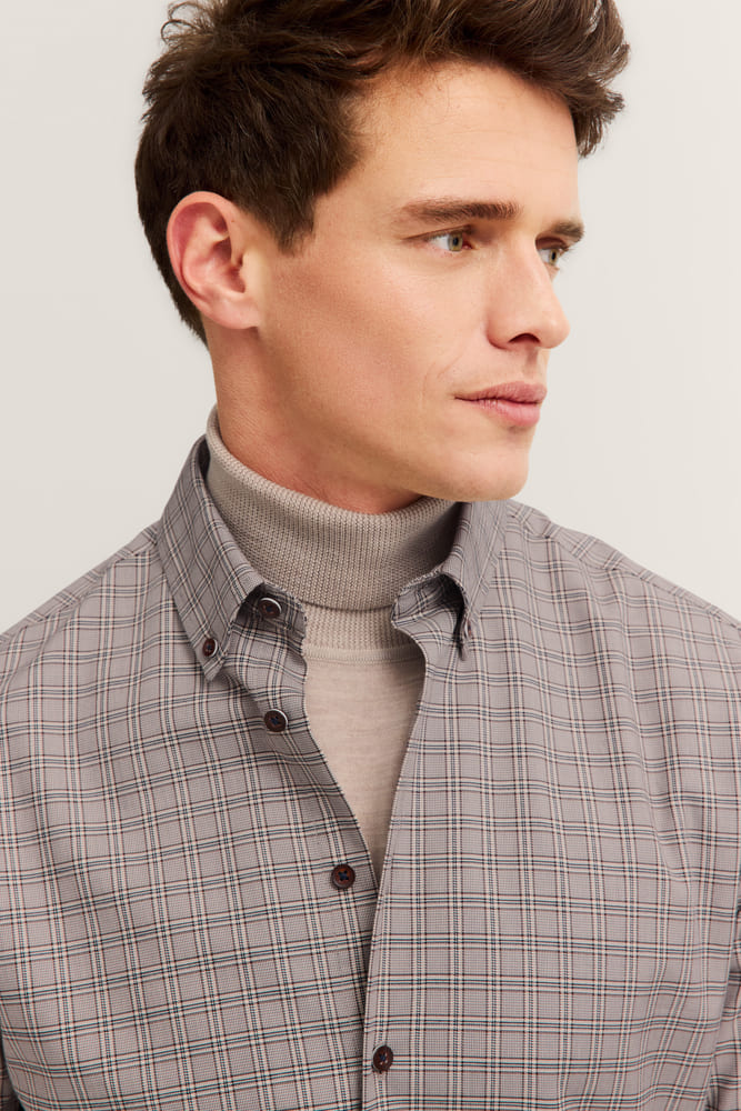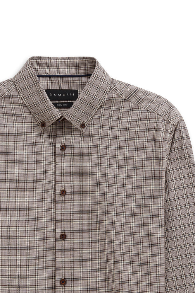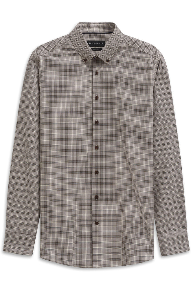 Con questa camicia casual a quadri su base marrone opterai per un look moderno e di facile abbinamento: bottoni in contrasto marroni, collo button-down; la vestibilità moderna leggermente aderente offre una silhouette moderna senza costrizioni, polsino smussato con 2 bottoni, senza taschino. Questa camicia non è solo comoda da indossare me è particolarmente facile da stirare grazie alla finitura easy care