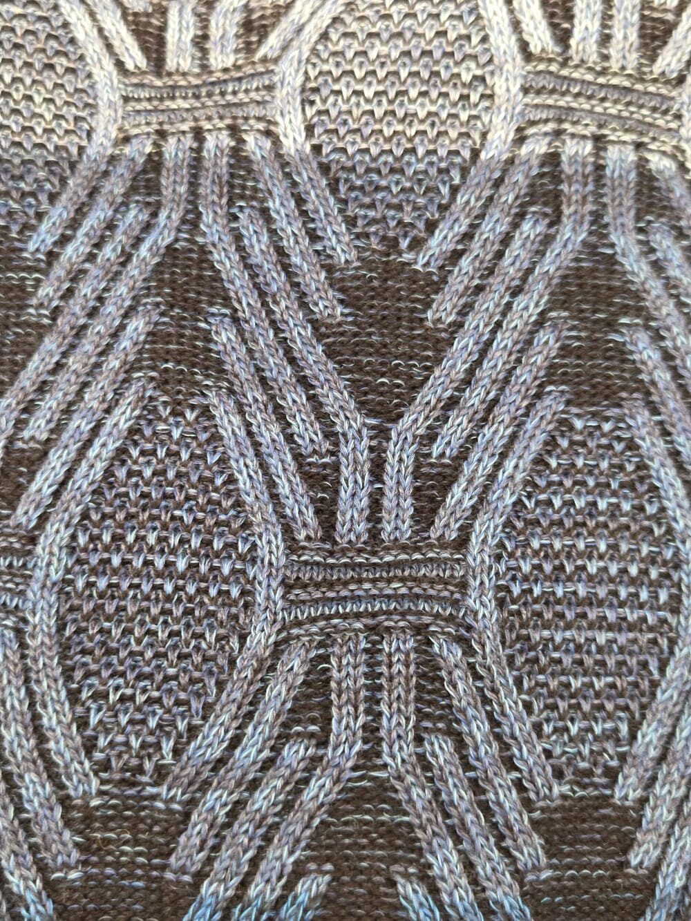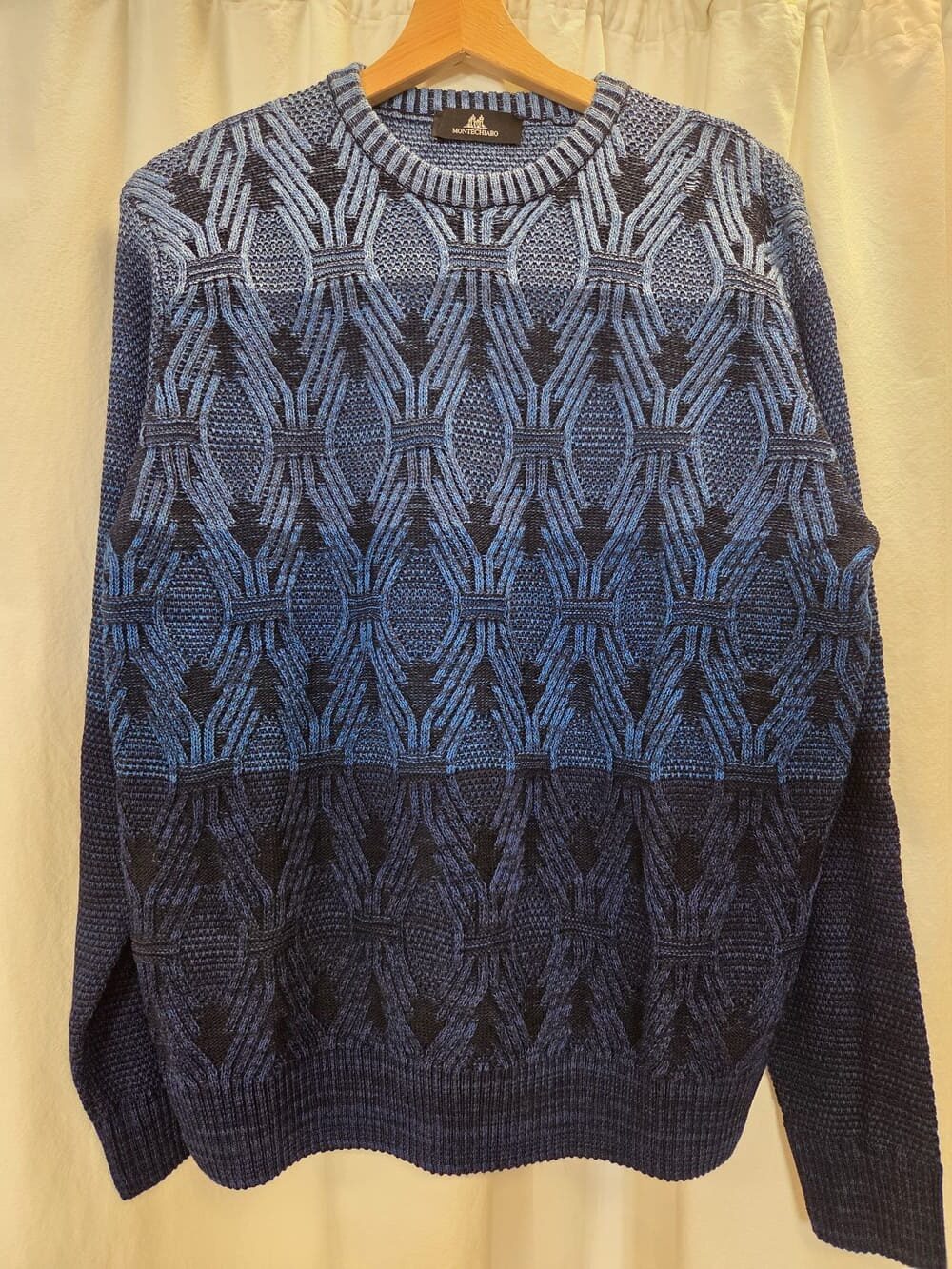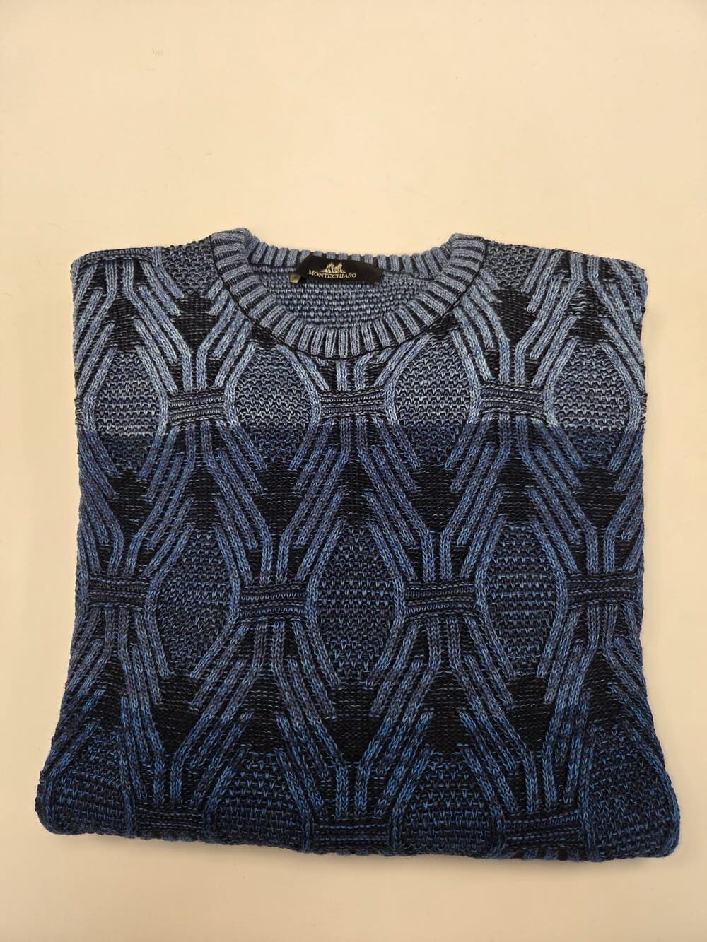 Girocollo THERMO CONFORT l’interno in puro cotone garantisce il massimo confort, l’esterno in misto lana per un maggior potere riscaldante. Operato con moderni rombi rivisitati, colore ‘degradè’ dall’azzurro al blu scuro