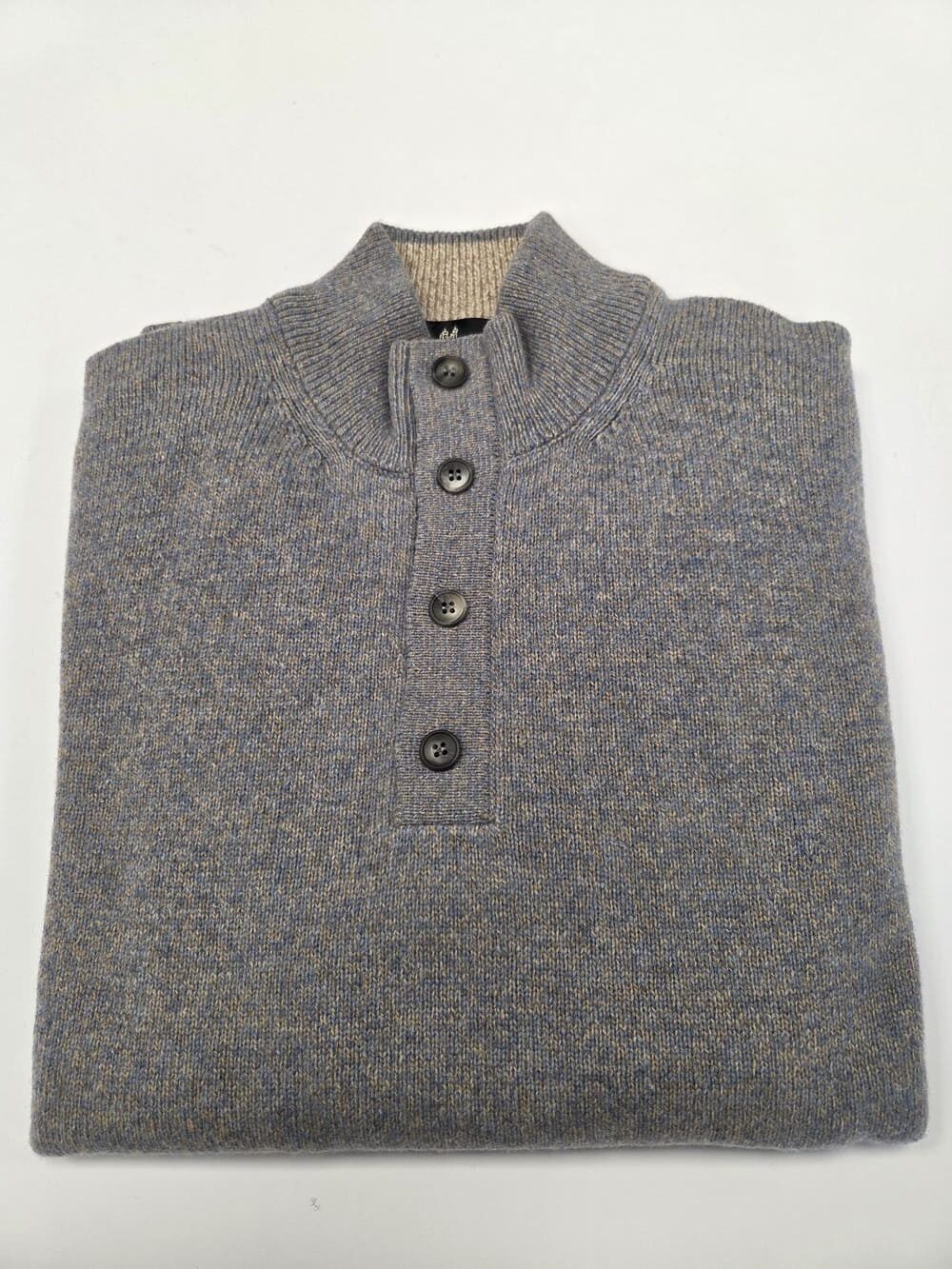 Giacca con tasche, collo in piedi color avion melange e cuciture in contrasto
