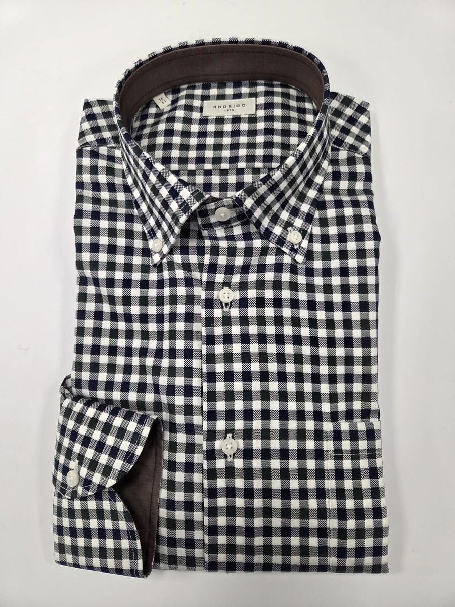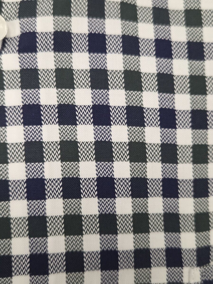 Collo Button-down, vestibilità regolare, con taschino, polsino stondato con 1 bottone. Fantasie quadretto bianco-blu notte e verde